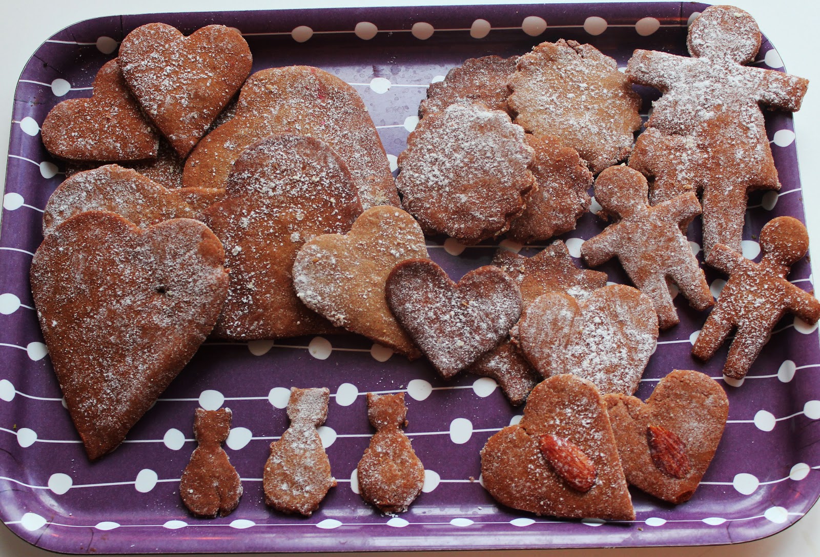 De runde appelsin/kanel kager fik lidt appelsinglasur. Hjerterne er af dejen fra min mors nøddehorn, som ses herunder. Vi lavede også hendes vaniljede vanille kranse, som jeg af en eller anden grund ikke har et billede af :(